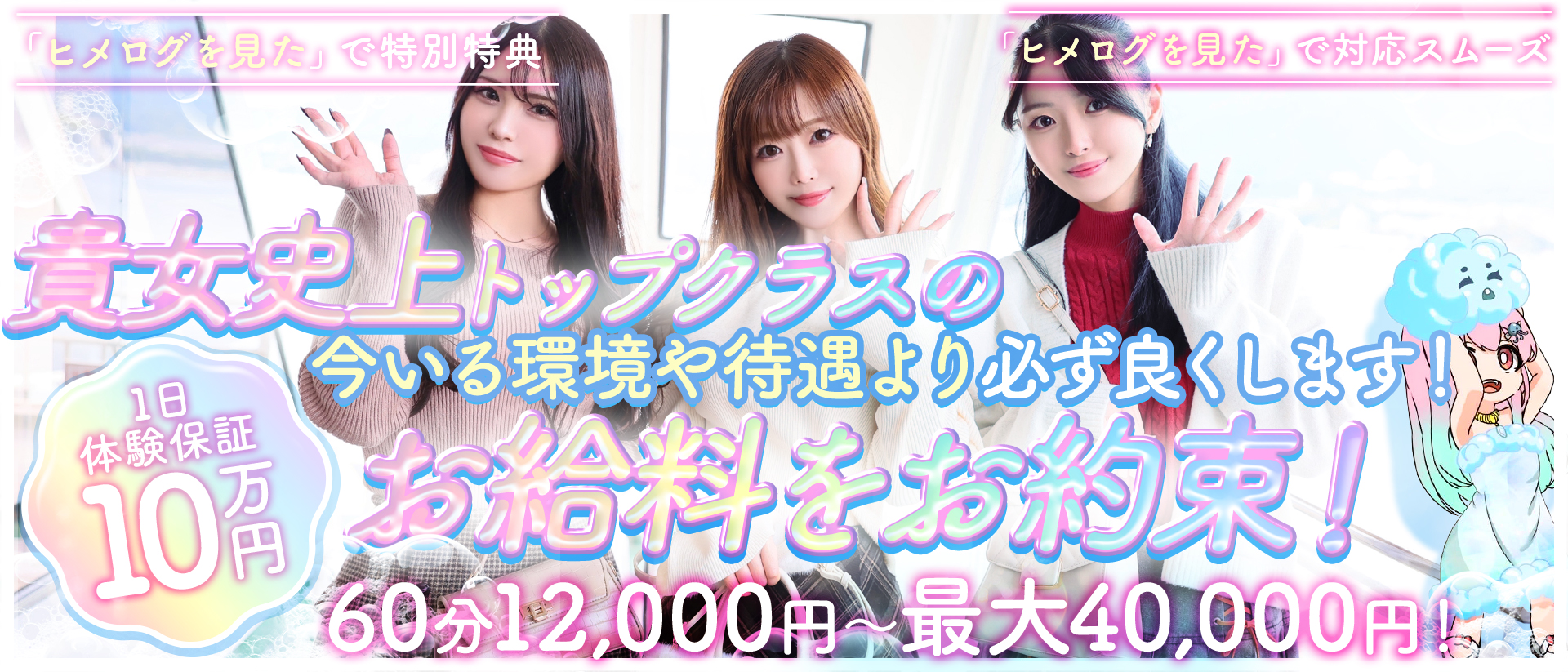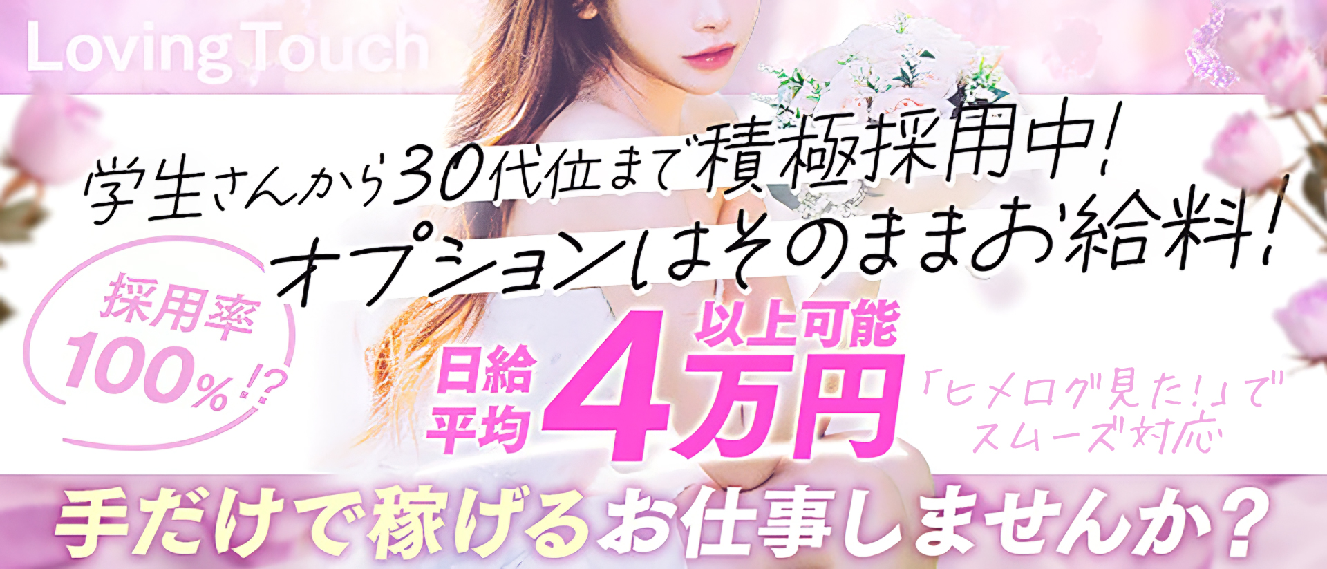 広島はソープも充実していて、実は風俗遊びはとても充実した都市と言えます。 様々なお遊びがある中、特に癒しを求めるユーザーが多く人妻やぽっちゃり系のデリヘルも大人気。 時間に縛りがある主婦の方や、プロポーションに自信がない女性も、全く問題ありません。 特に最近は「マシュマロ女子」という言葉もあるほど、ぽっちゃり需要は高まっています。 ヒメログでは、初めてでもしっかり稼げて、自由な環境でストレスなく働けるお店を多数ご紹介中です。 体験入店後にお祝い金をもらえる店舗もあり、お得に仕事を始めたい女性に最適です。