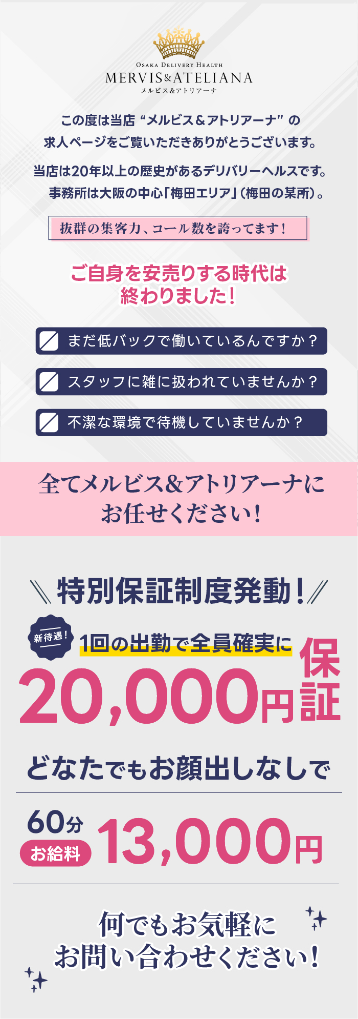当店は10年以上続く大阪市内発のデリバリーヘルスです☺️日給¥50,000以上